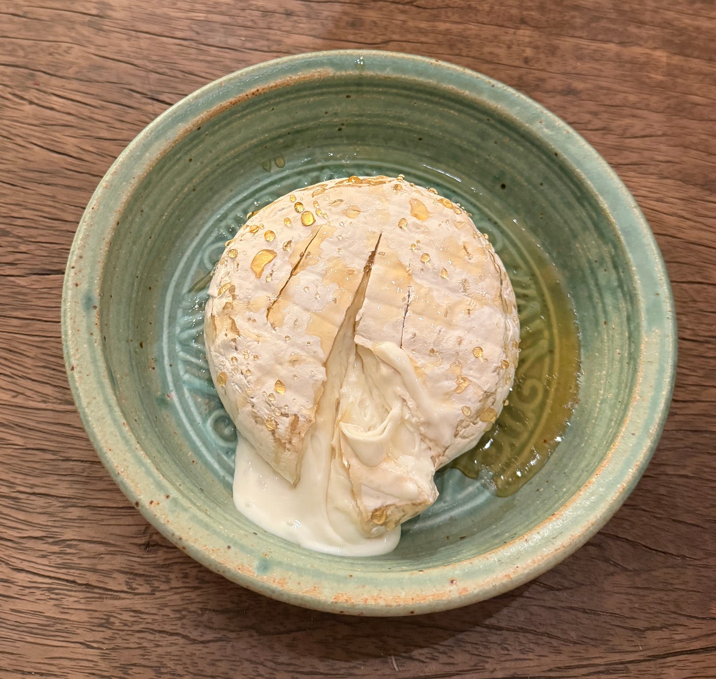 Place cheese in the dish. Bake for 10-20 minutes or until soft, hot and puffed slightly in the middle. Cook time will depend on the size of the wheel.